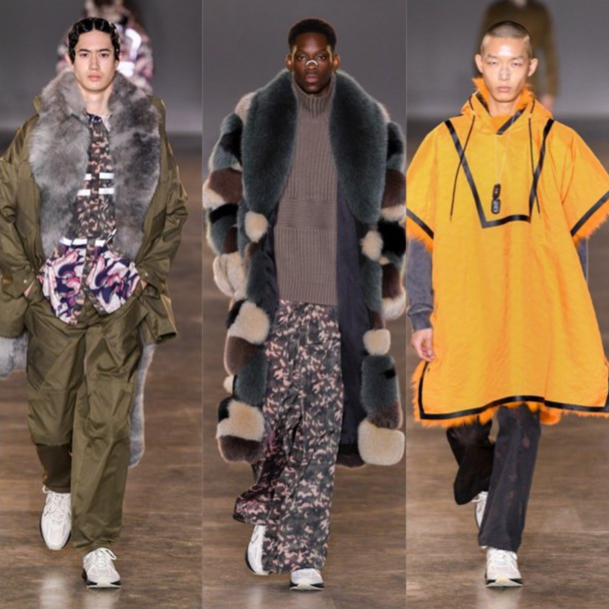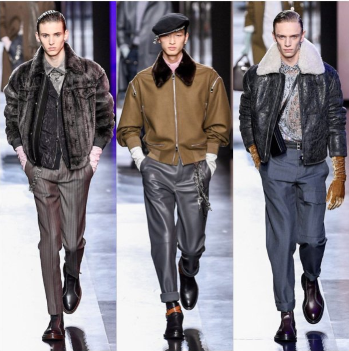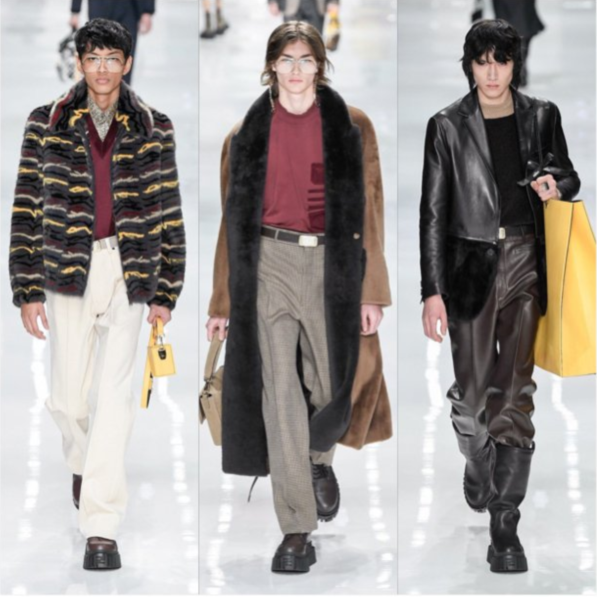 Ogni pelliccia in passerella era un capolavoro: da ricordare i pezzi colorati a metà, a righe e a motivi, a comporre uno spettacolo di abbigliamento maschile sostenibile pronto per estasiare il 2020.