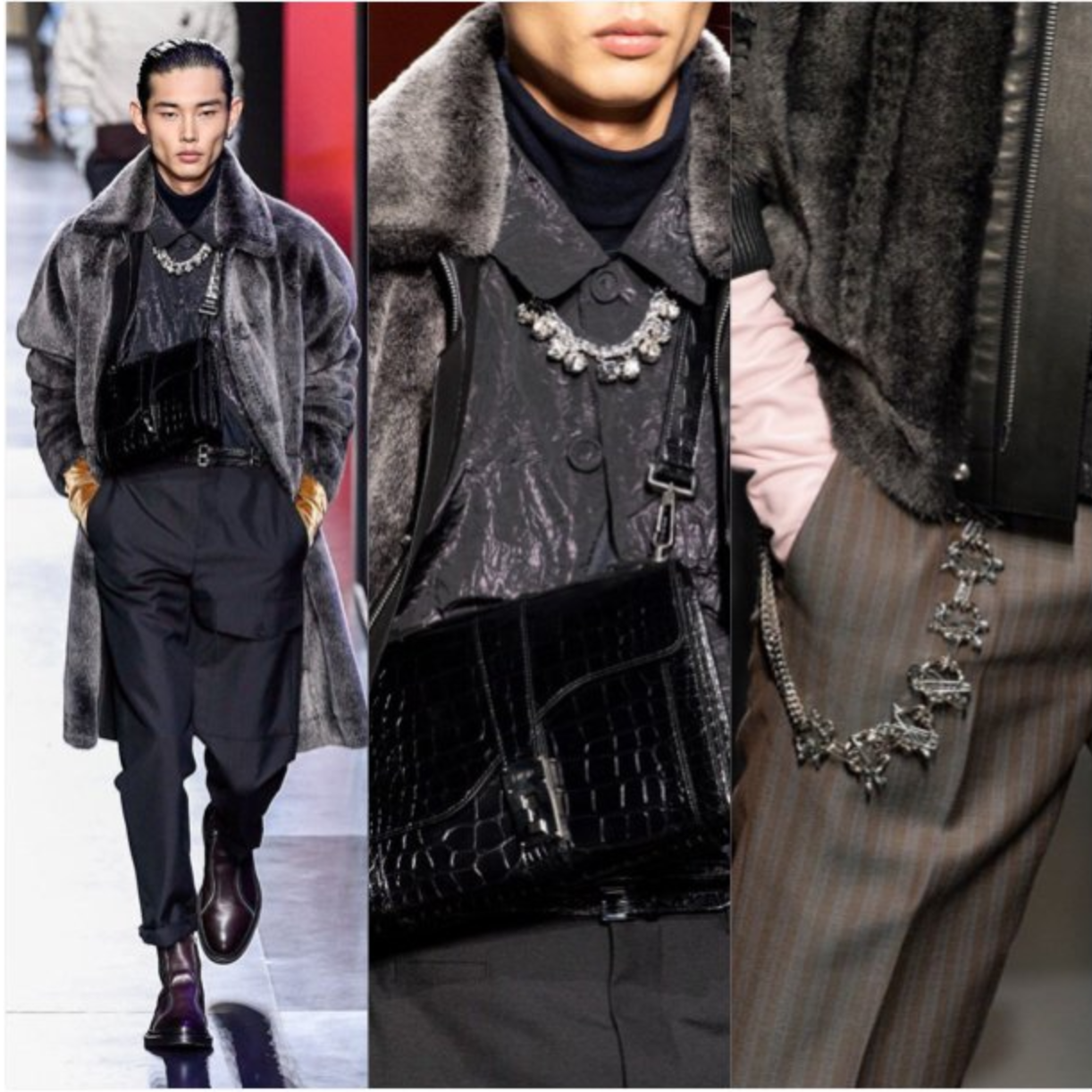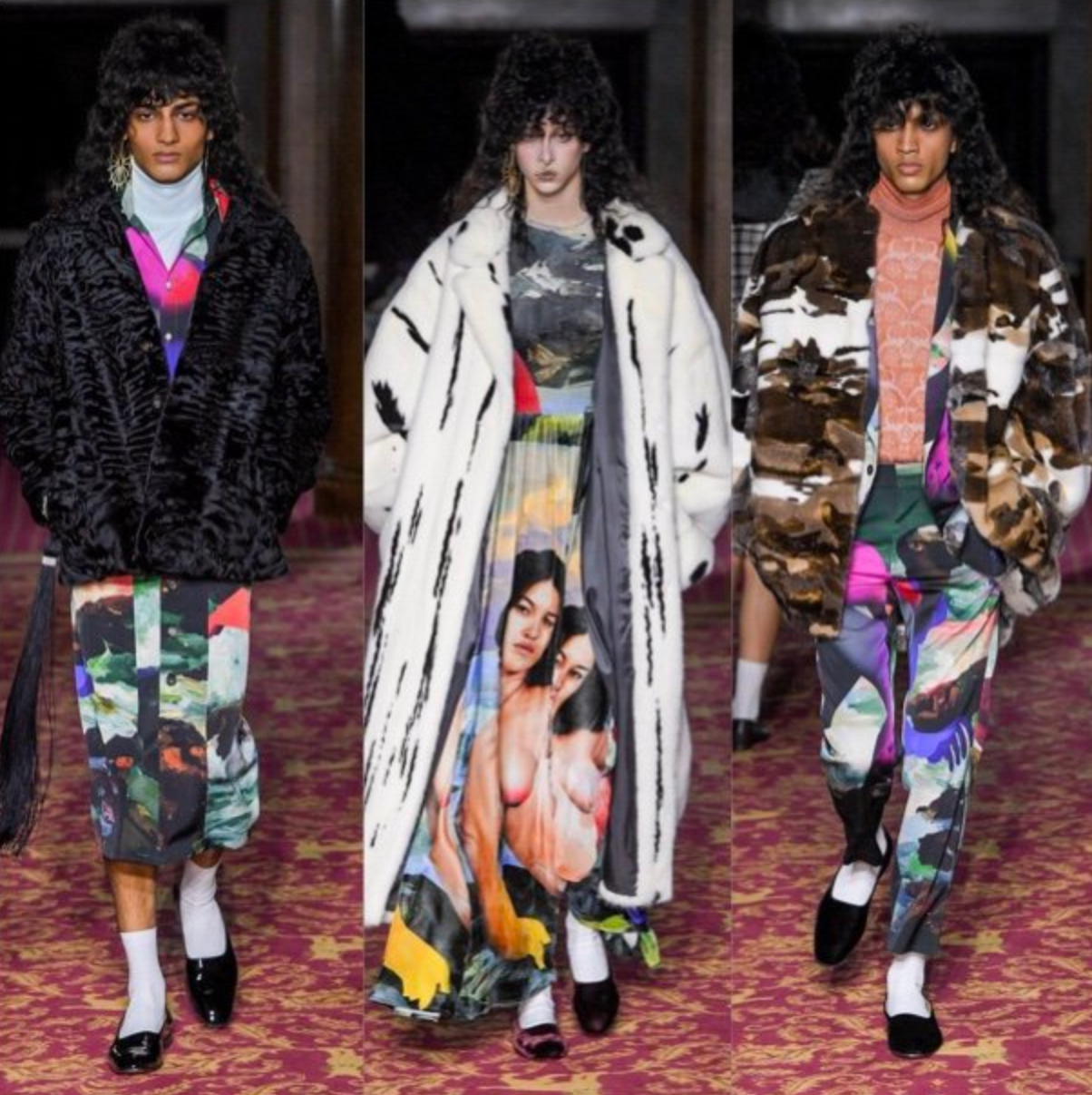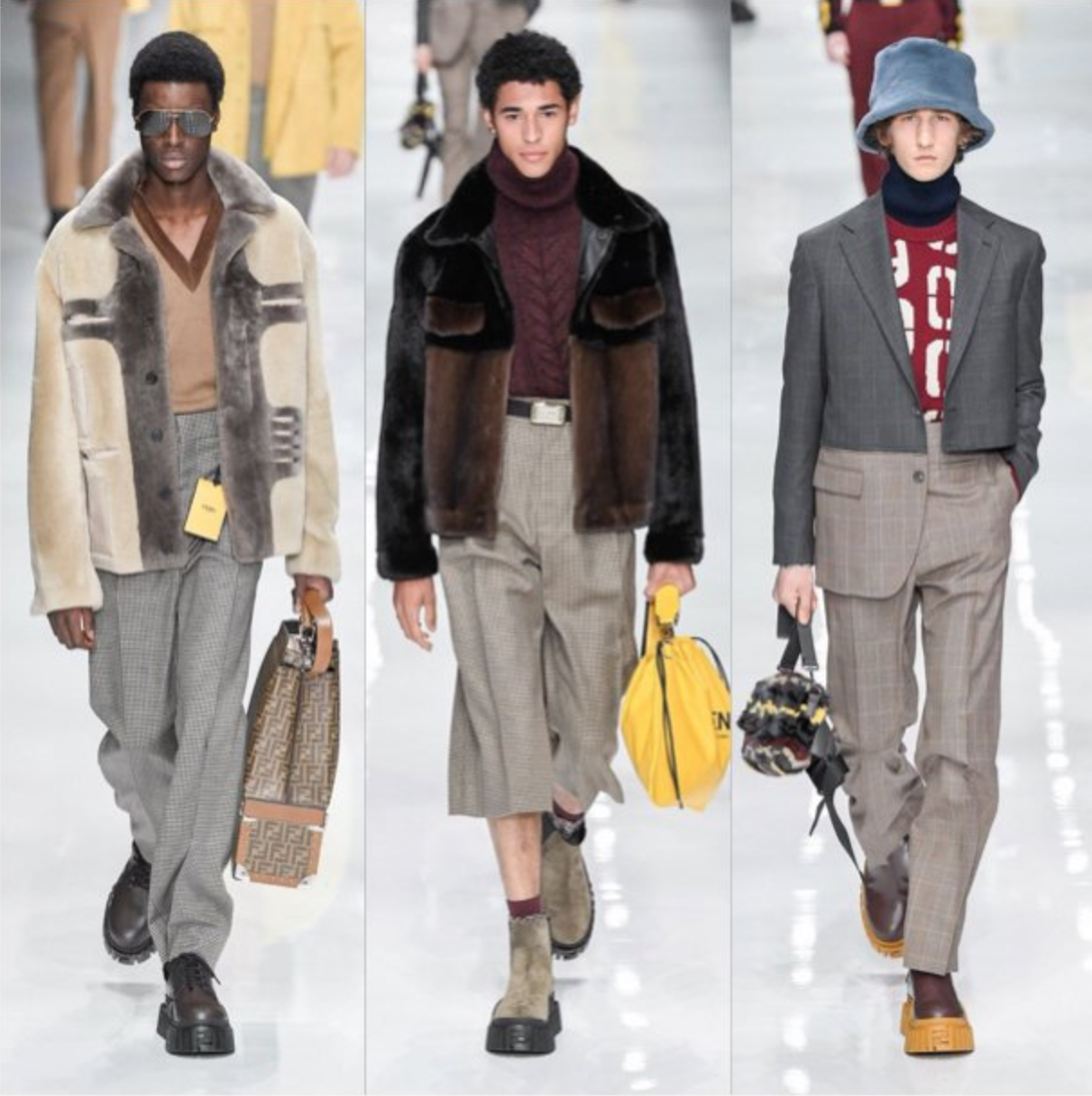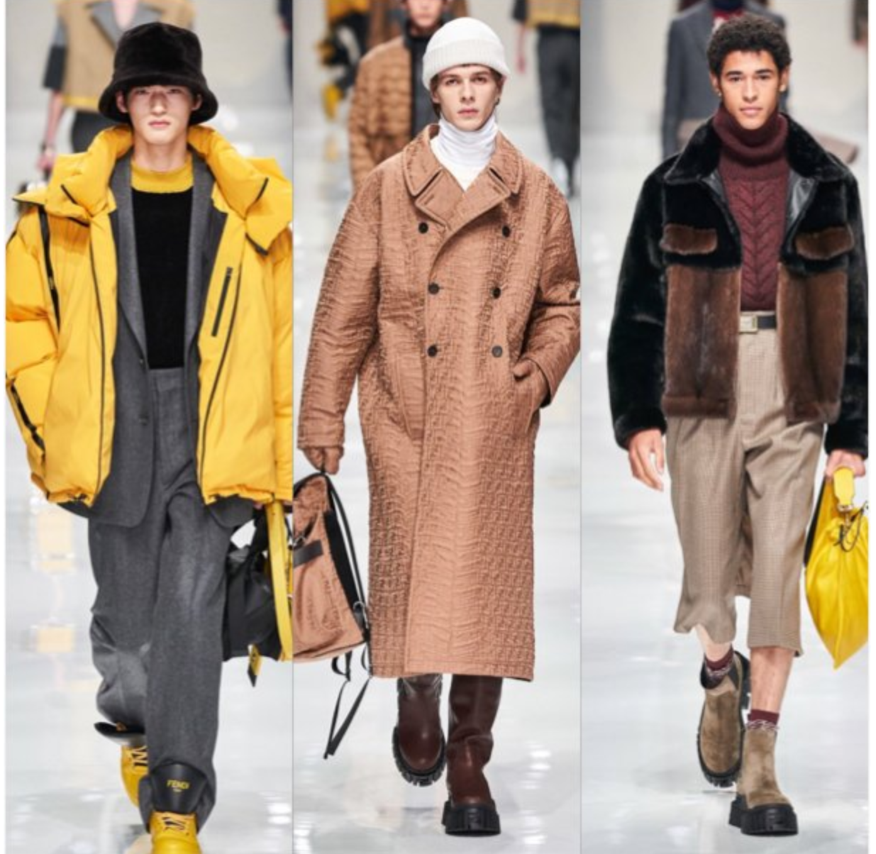Ogni pelliccia in passerella era un capolavoro: da ricordare i pezzi colorati a metà, a righe e a motivi, a comporre uno spettacolo di abbigliamento maschile sostenibile pronto per estasiare il 2020.