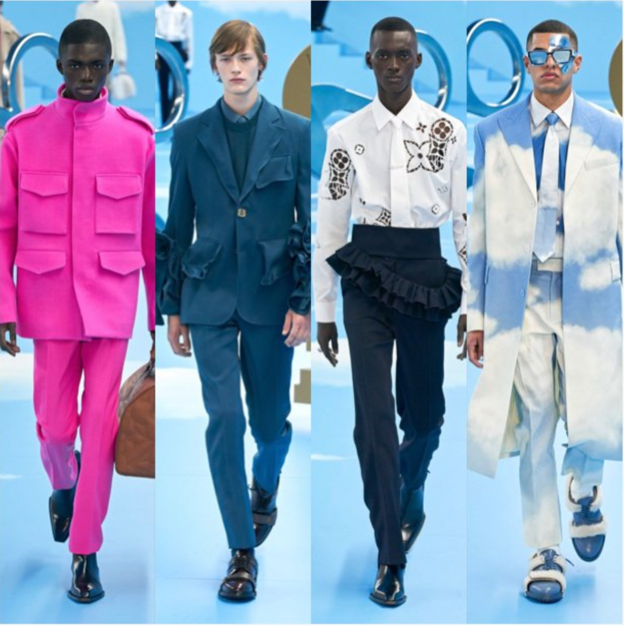 Virgil Abloh ci ha riportato a lavorare a Parigi, in giacca e cravatta, e lo ha fatto con stile. La sfilata si è aperta con i modelli seduti in un tranquillo “posto di avoro” con il cielo azzurro e le nuvole bianche. Scesi in passerella è risultato chiaro sia il tema della collezione il messaggio che Abloh stava cercando di trasmettere - cosa significa il lavoro ai giorni nostri "e quali sono le metafore per questo "(Vogue).
